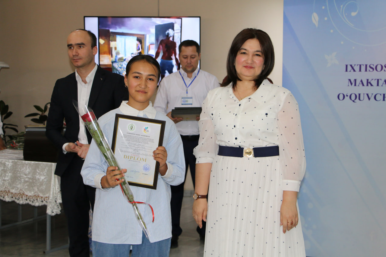 1-o'rin sohiblariga diplomlarni O‘zbekiston Badiiy akademiyasi raisi Akmal Nur topshirdi.
